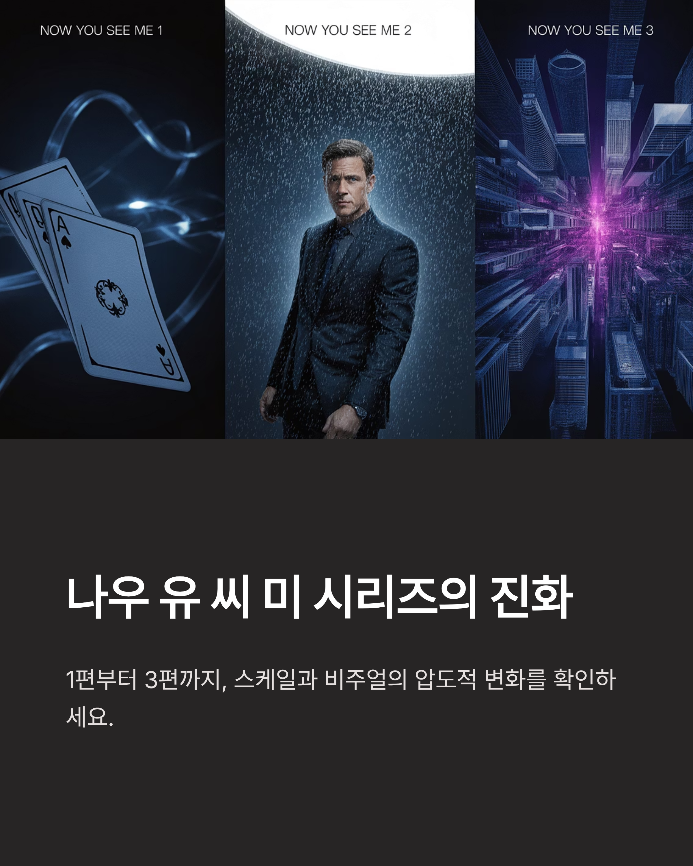 1편과 2편이 쌓아 올린 세계관 위에서, 나우 유 씨 미 3가 어떤 면에서 본격적으로 차별화되고 진화했는지, 네 가지 핵심 포인트를 비교 분석해 봅니다.